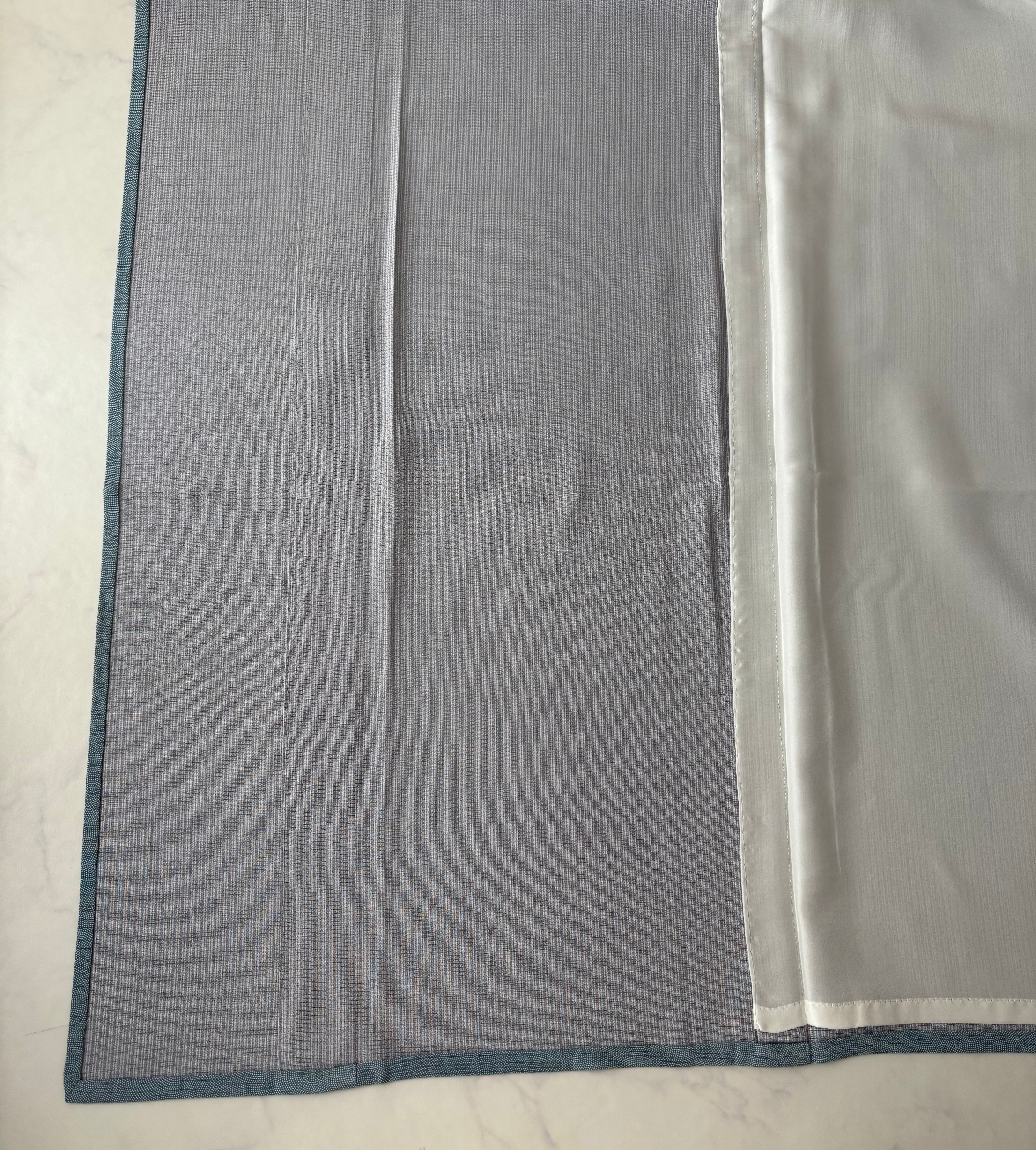 薄い青緑色の地に鮫文様が染められた