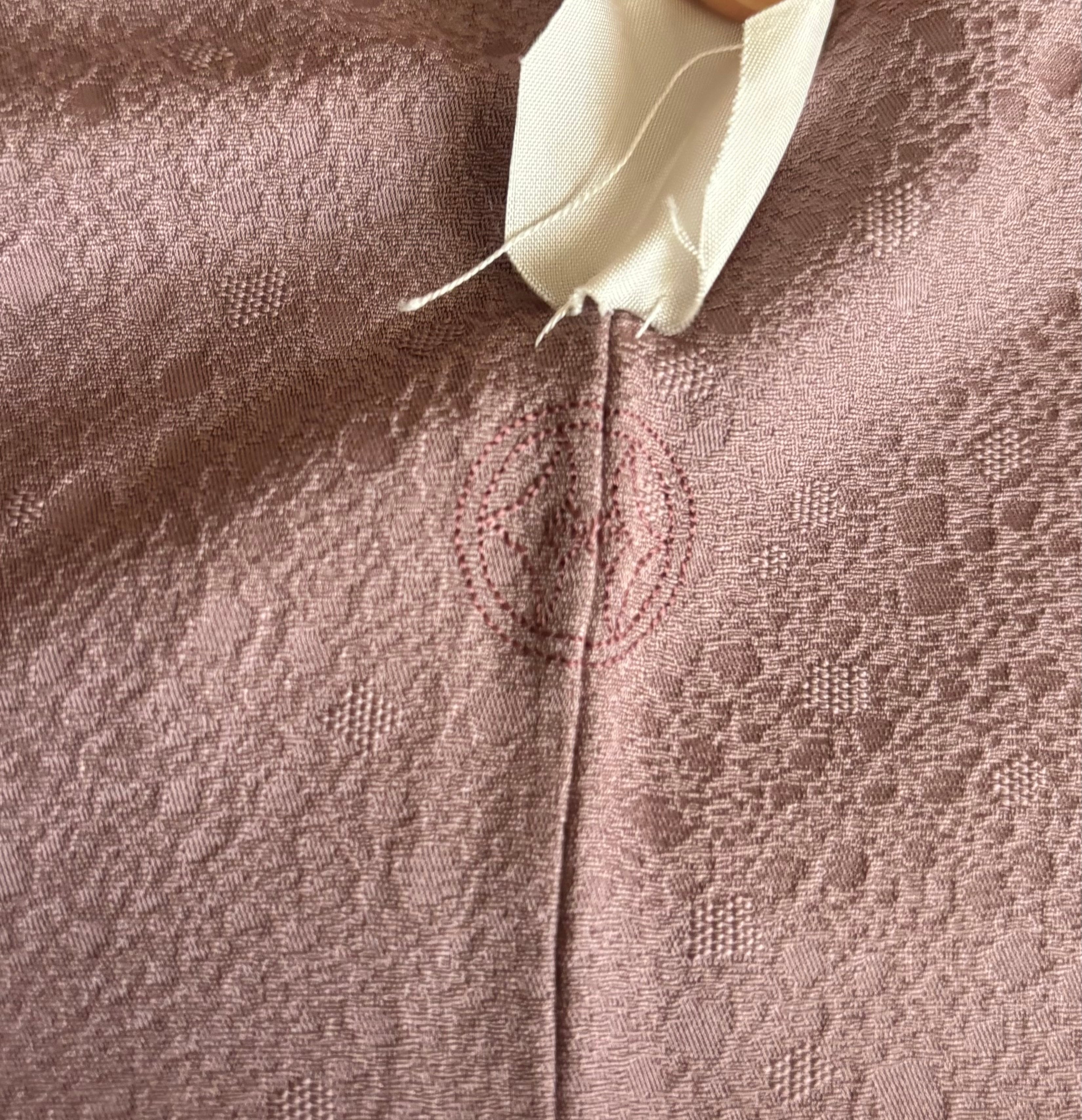 袷 スモーキーピンク色地 水玉地紋 色無地 一つ紋入り