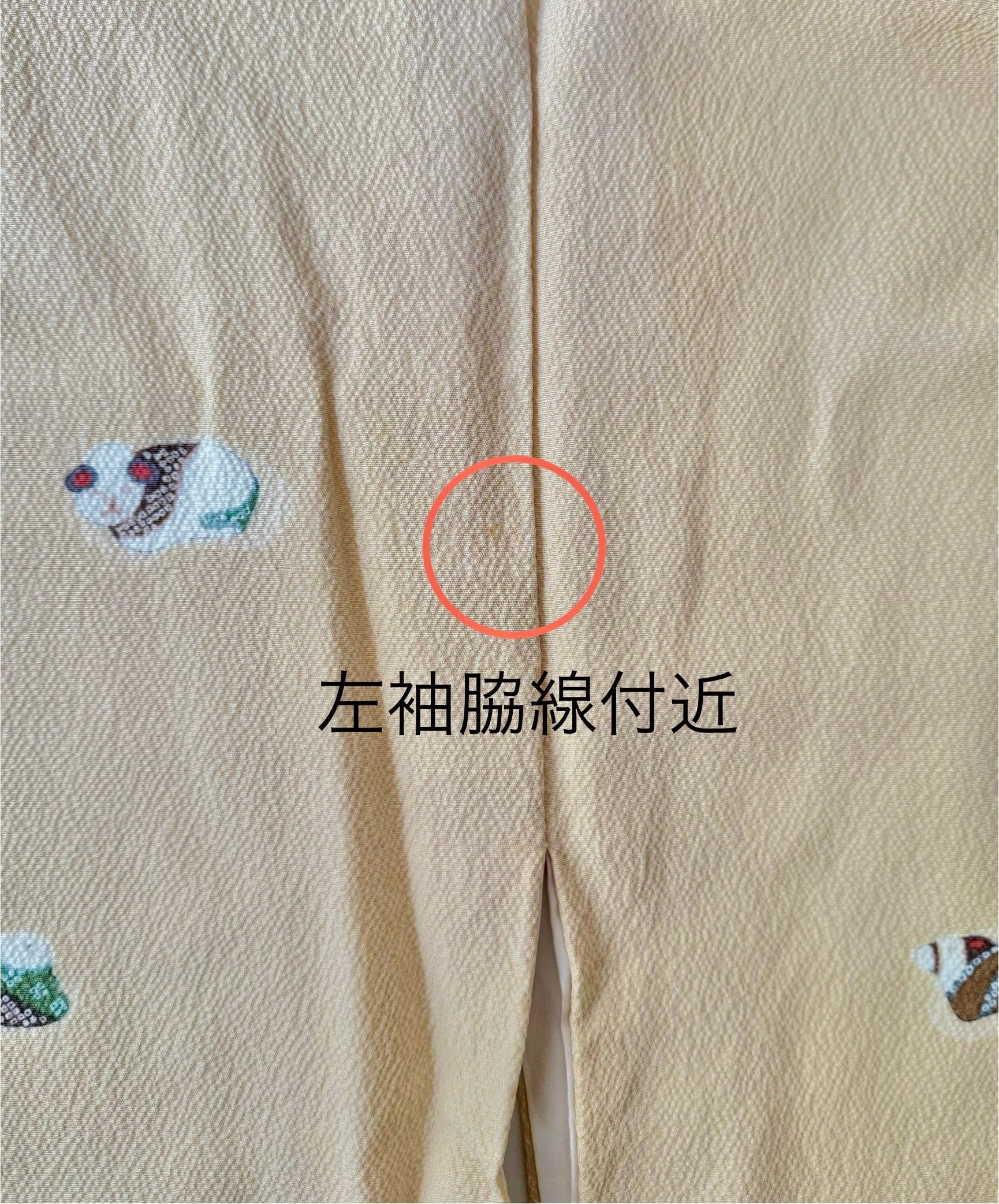 クリーム色地に干支文様が描かれた縮緬の小紋です。