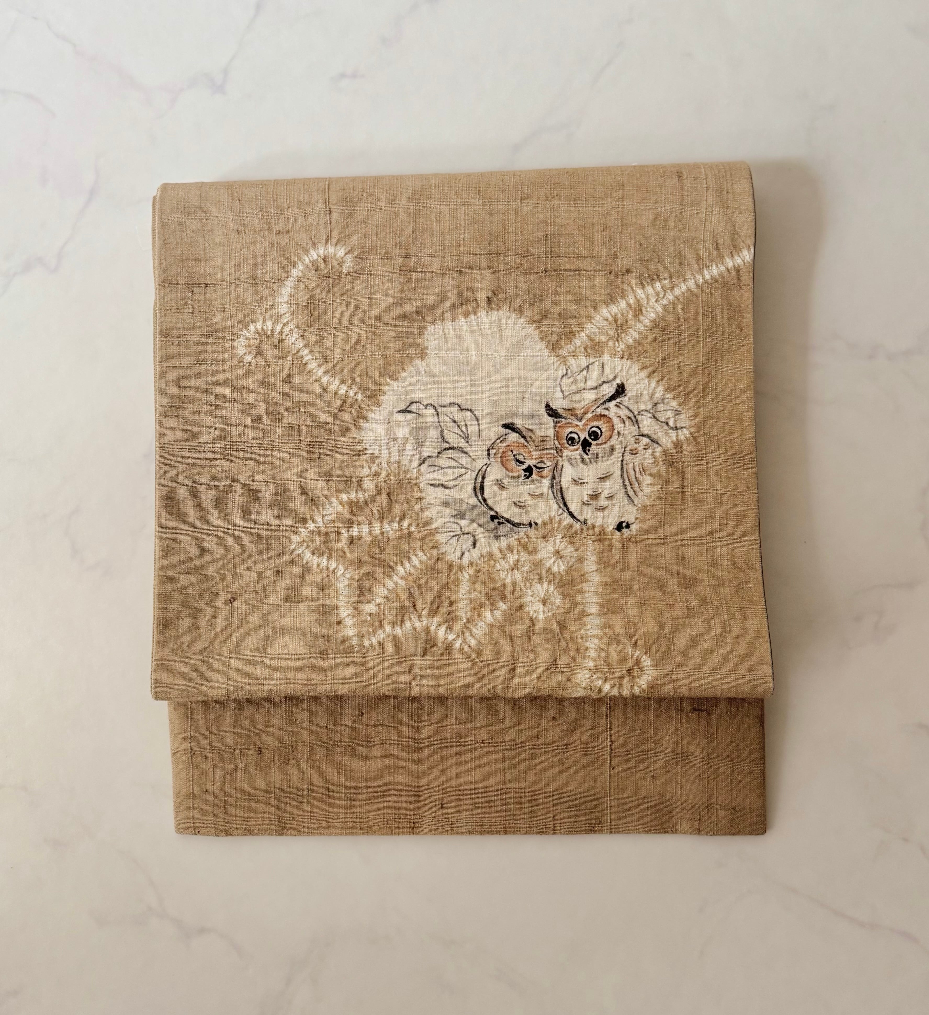 付け帯 梟文様 絞り 紬 名古屋 付け帯 証紙付き